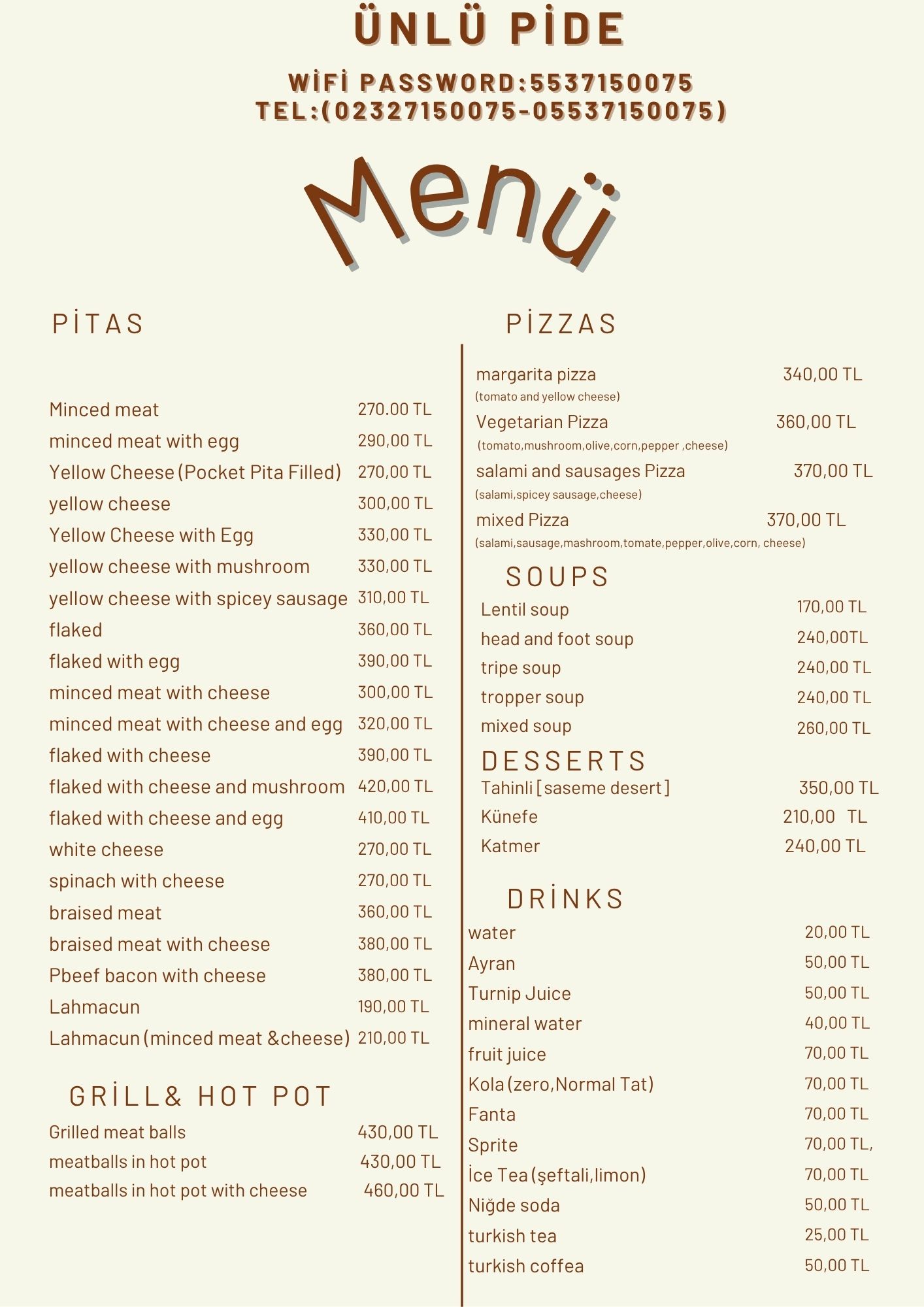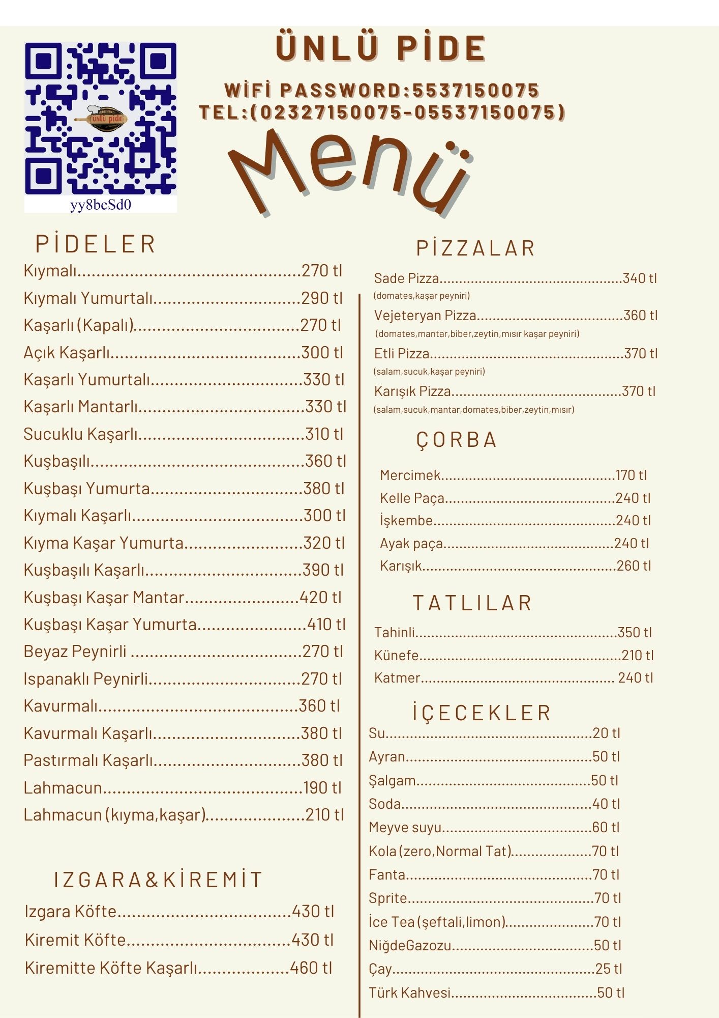 Ara sıcakla başlayan lezzetlerimiz Ünlü Pide çeşitleriyle devam edip tatlı çeşitleriyle son buluyor.